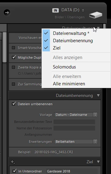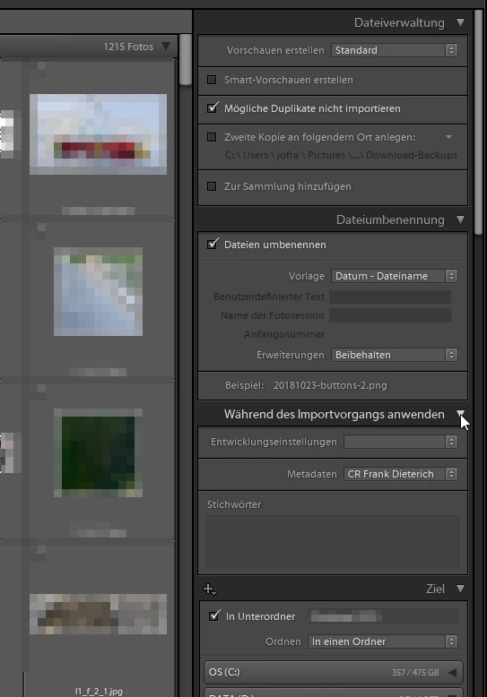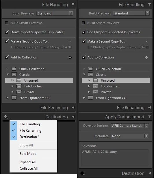 I'm used to the workflow to insert my sd card and give keywords, apply development settings and add metadata during the import.