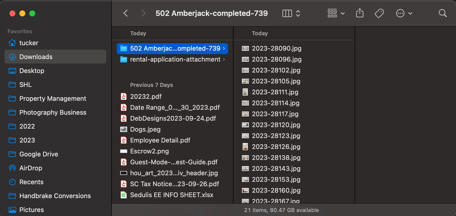 This finder window shows the 21 jpg images in the folder I was trying to import.