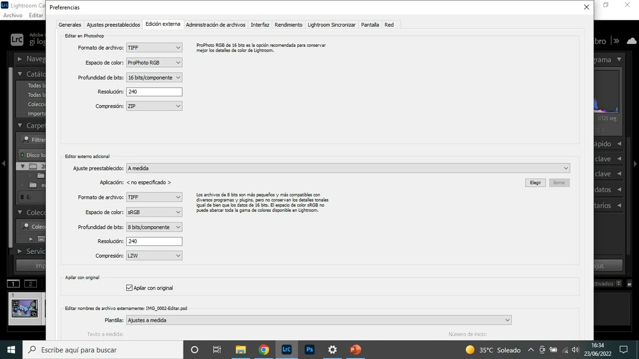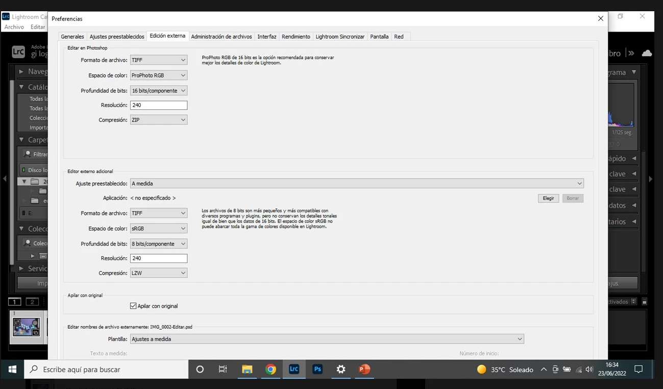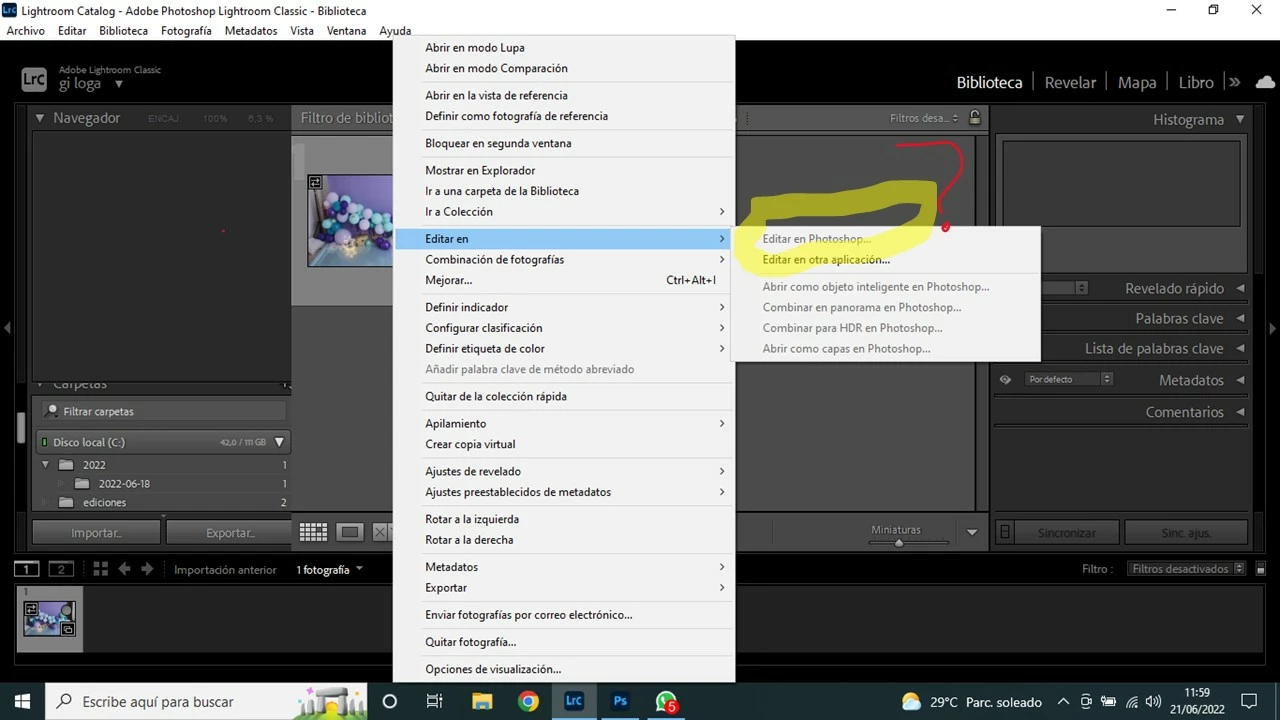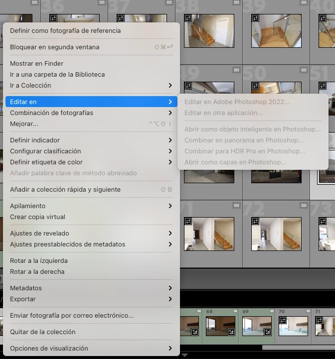 No me aparece activa la opción EDITAR EN PHOTOSHOP desde Lightroom cuando doy clic derecho