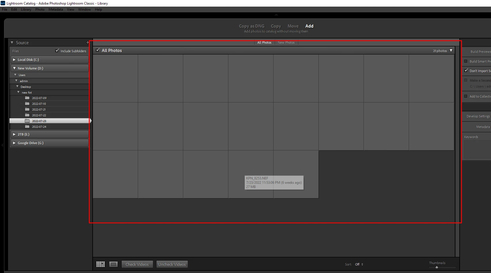 Not shows previews in library