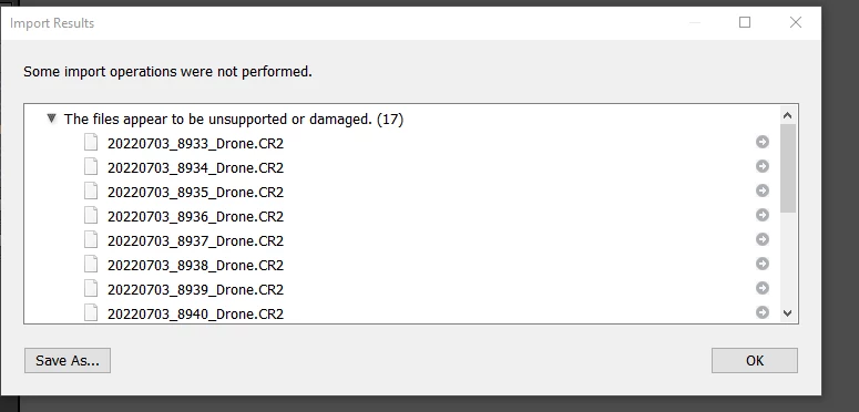 As for the camera, I import from a file on my computer, not from the camera itself. I upload from the SD card to the computer. The camera is a Canon 6D.