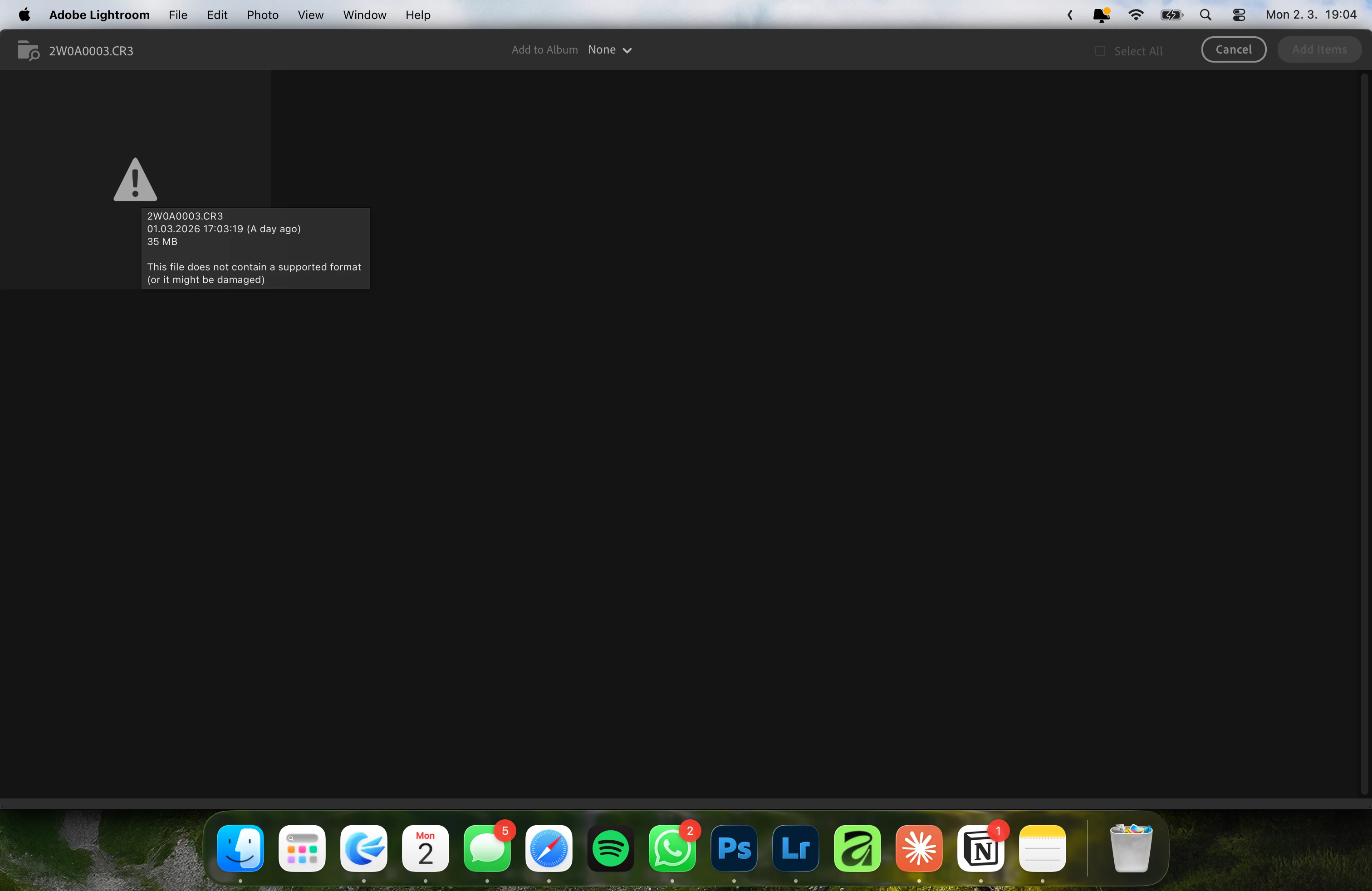 Occasionally get "This file does not contain a supported format (or might be damaged)" when importing CR3 files from card