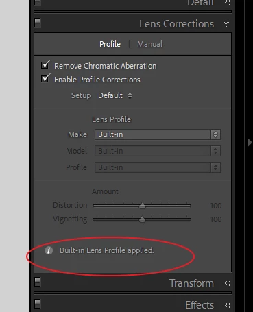 With my EM1 M II and all olympus lenses under Profile it states Built inLens Profile Applied. Yet the same lens on the om-1 does not apply the built in profile. Why not?