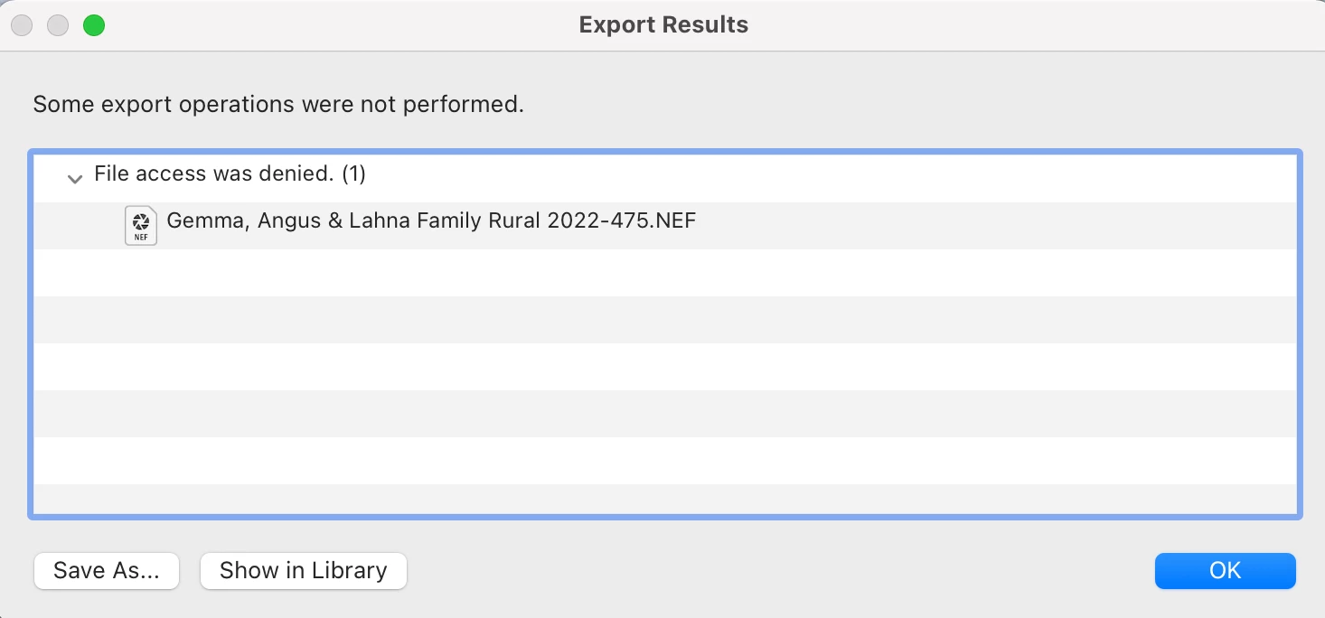 I have tried to export the image as it's own catalogue and export from there - says File access was denied.