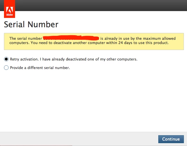 1. Can't access your old computer? If you can't access your previous computer (for example, you reformatted the hard drive or lost the computer), don't worry. We can help you deactivate your app from your old device. Make sure that you have your serial number  or Adobe ID  handy, and then contact us ."