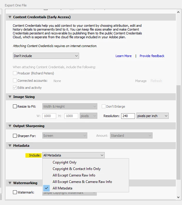 I export a photo, enabling Content Credentials attached to the export. If I then extract the thumbnail, it turns out to have hundreds of lines of EXIF data including at least the camera and time/date. First of all, there's an issue as to whether that EXIF actually adds value, but more important, it's not hard to think of occasions where I might want to attach provenance to a photo but not disclose further details. I regard this as a serious privacy vulnerability.