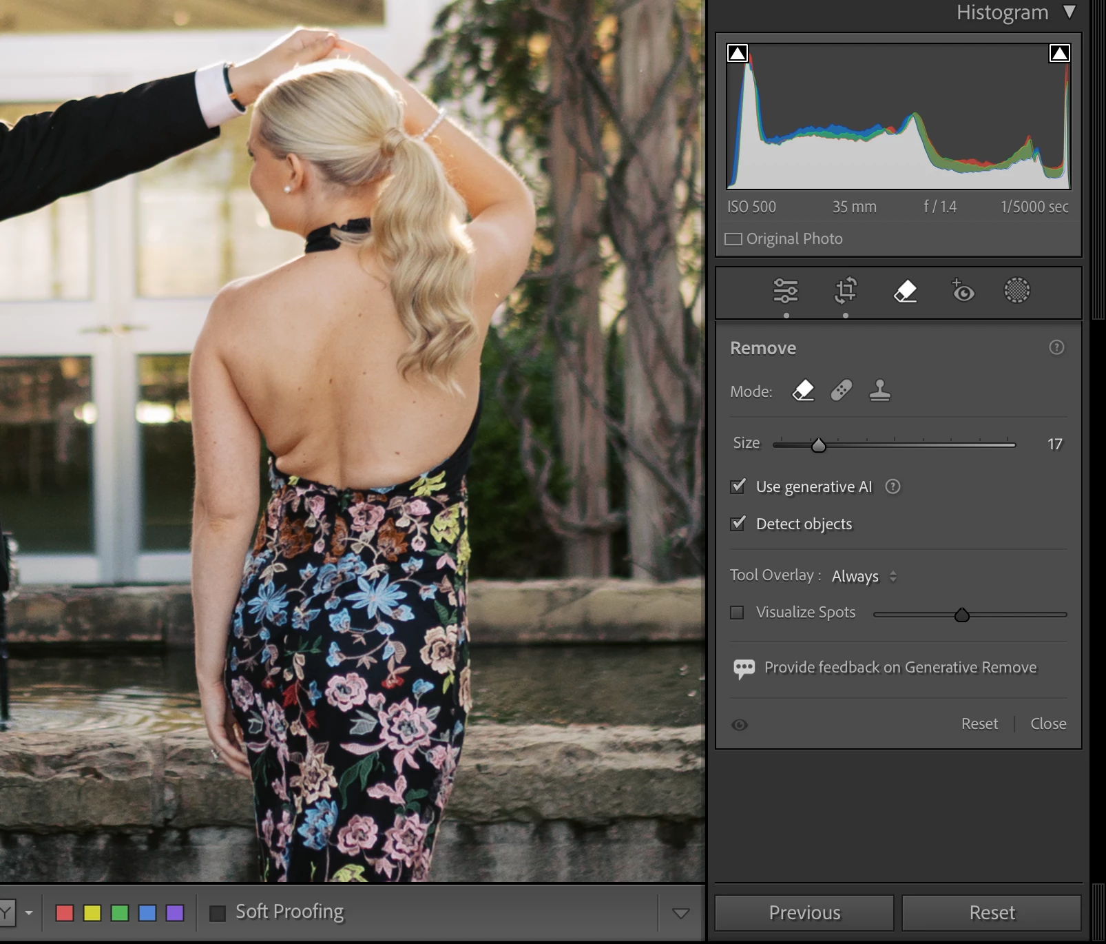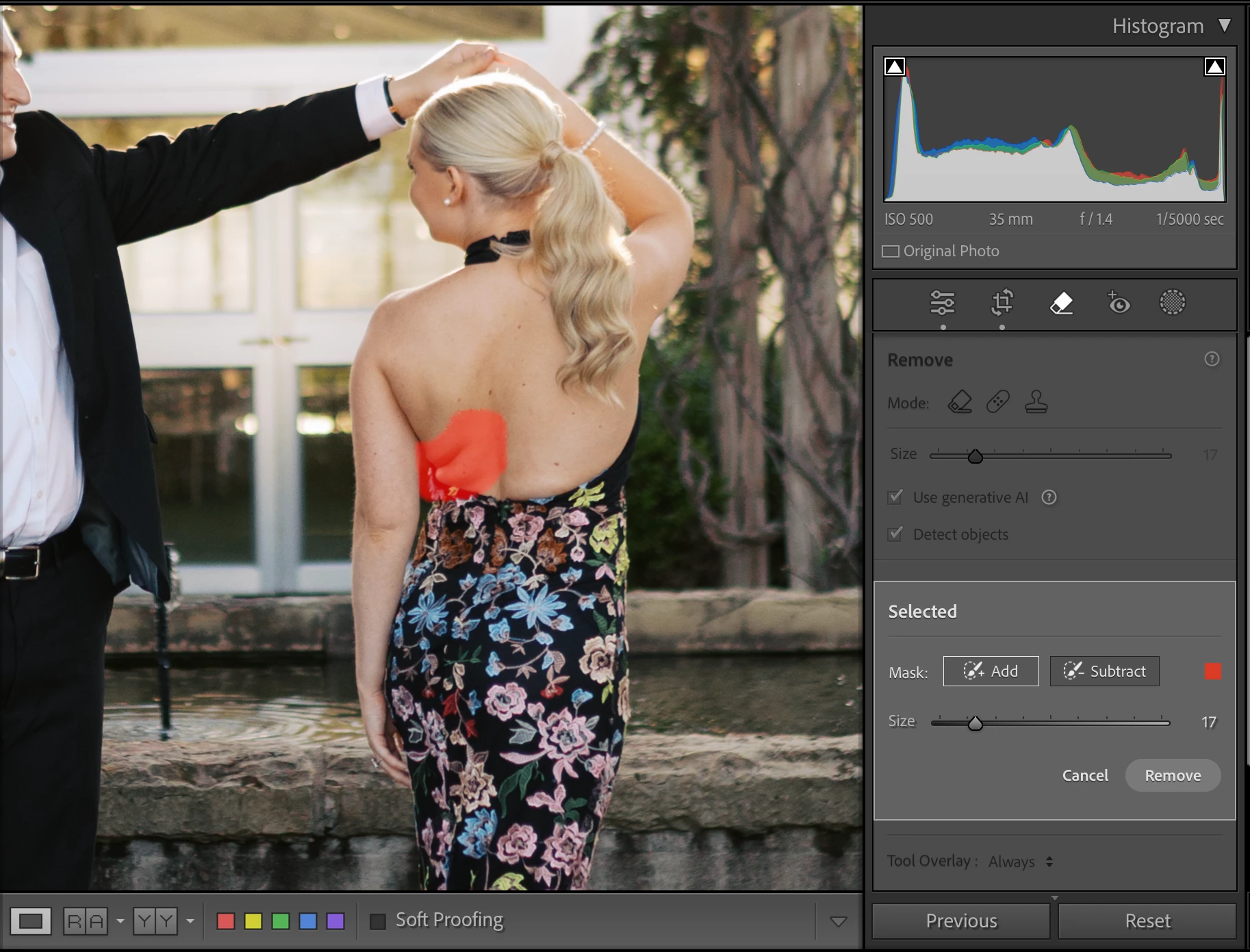 @christen_7038: "The remove feature does not match the grain or noise of an image and leaves a line around the removed area. For instance, removing something off of a blank wall with an image taken at a high ISO."