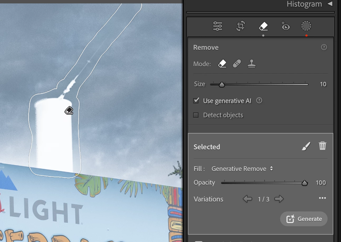 I like some improvements to the Remove in LRC. I am on version 14.3.1 and my OS is Sequoia 15.5.  Sometimes when I have a group of people to Remove I have to do it in bit and pieces, doing the removal of everyone all at one doesn't work sometimes. Also, I just tried removing an airplane cloud trailer in the sky and it removed it but it is evident because the replacement sky is a different color of blue than the rest of the sky.