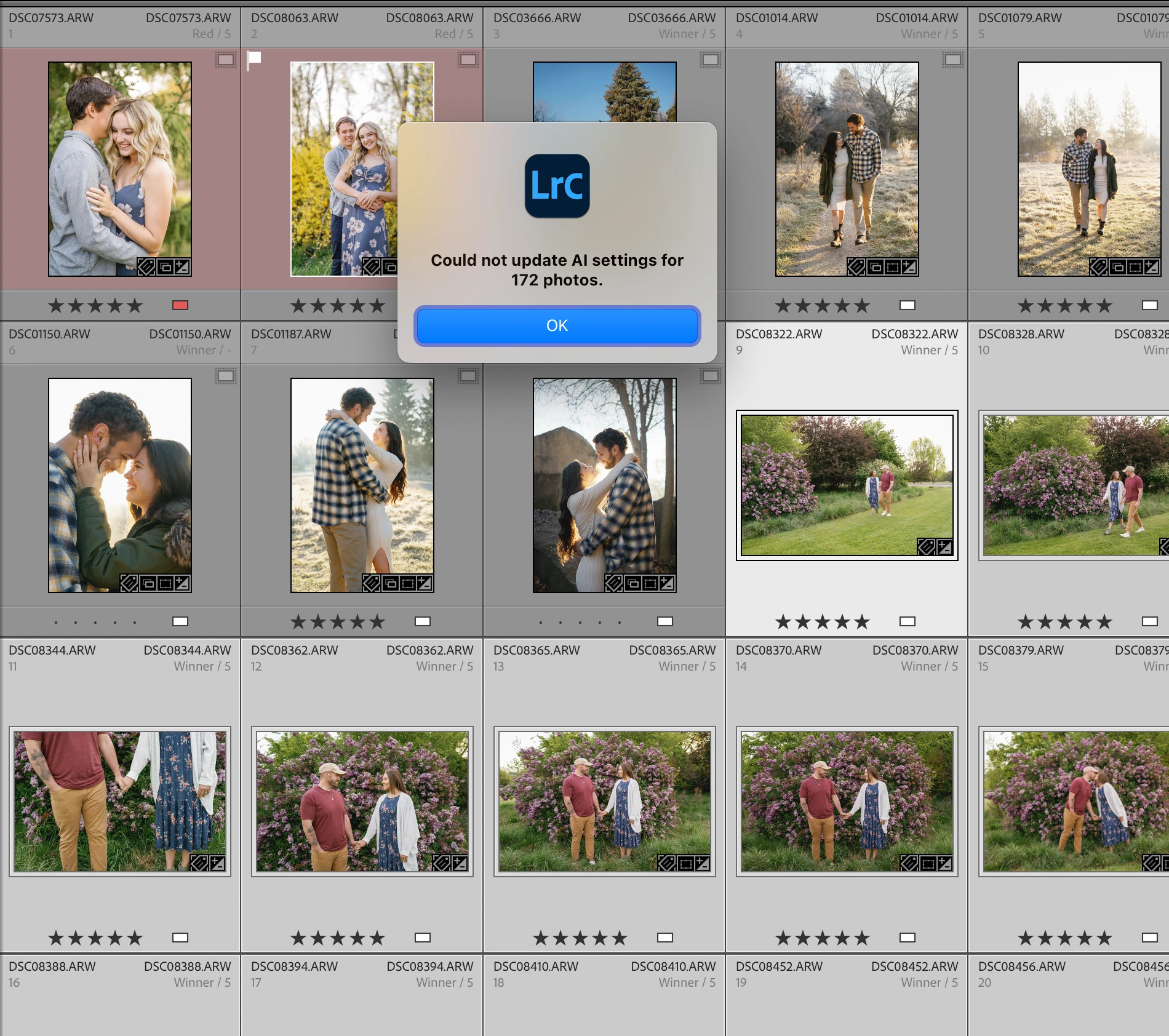 Here are videos to explain my failed attempt to fix the Gen AI tool issue that I have been dealing with.  Updating all my edits doesn't work.  Batch updating doesn't work.  It remembers my edits for a minute and then forgets and tells me to update again and again and again.  I followed instructions about moving the ircat-data file, but Lightroom warned me it wouldn't remember my edits.  Please watch the videos and tell me what I need to do to fix this problem for good.  My previous post is this: