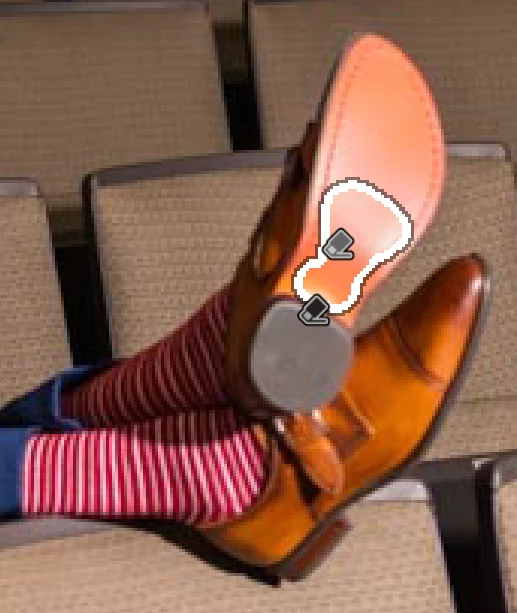 Sometimes it helps to do two removals. In this case, I first replaced the white part of the heel, and then replaced the white reflective scuff marks:
