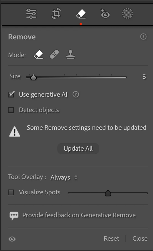 Batch updating is also now supported for Generative Remove spots.