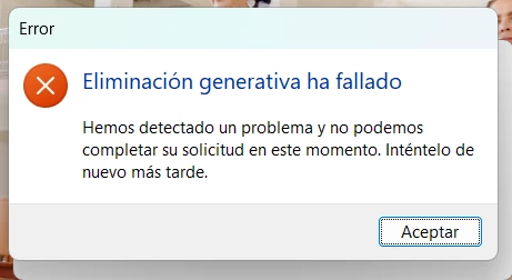 @Miguel Aguillón Fotógrafo: "Generative deletion failed. We encountered a problem and are unable to complete your request at this time. Please try again later."