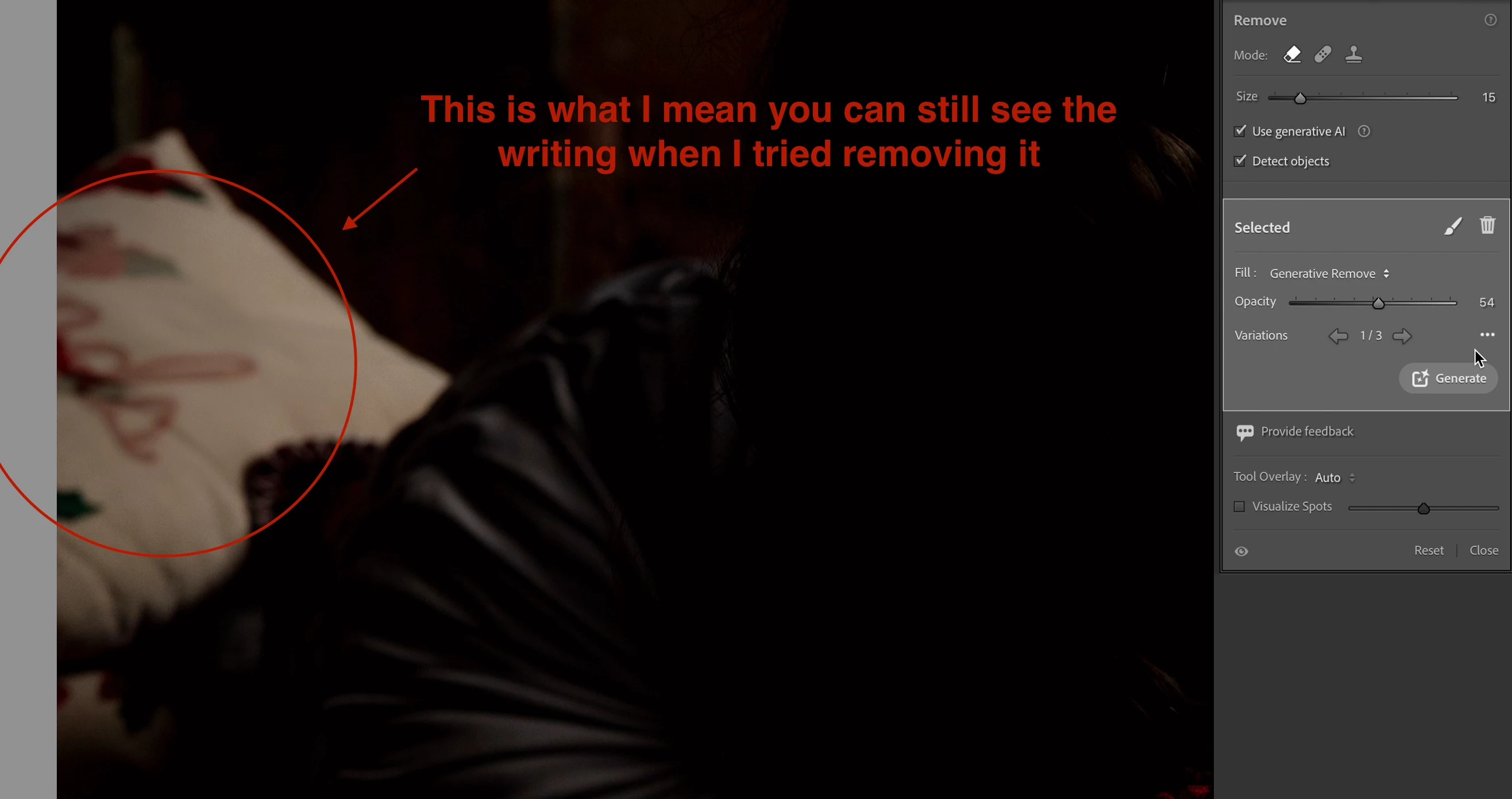 I'm trying to identify, but in some images, the generative fill keeps leaving a visible edge where it removed and object.
