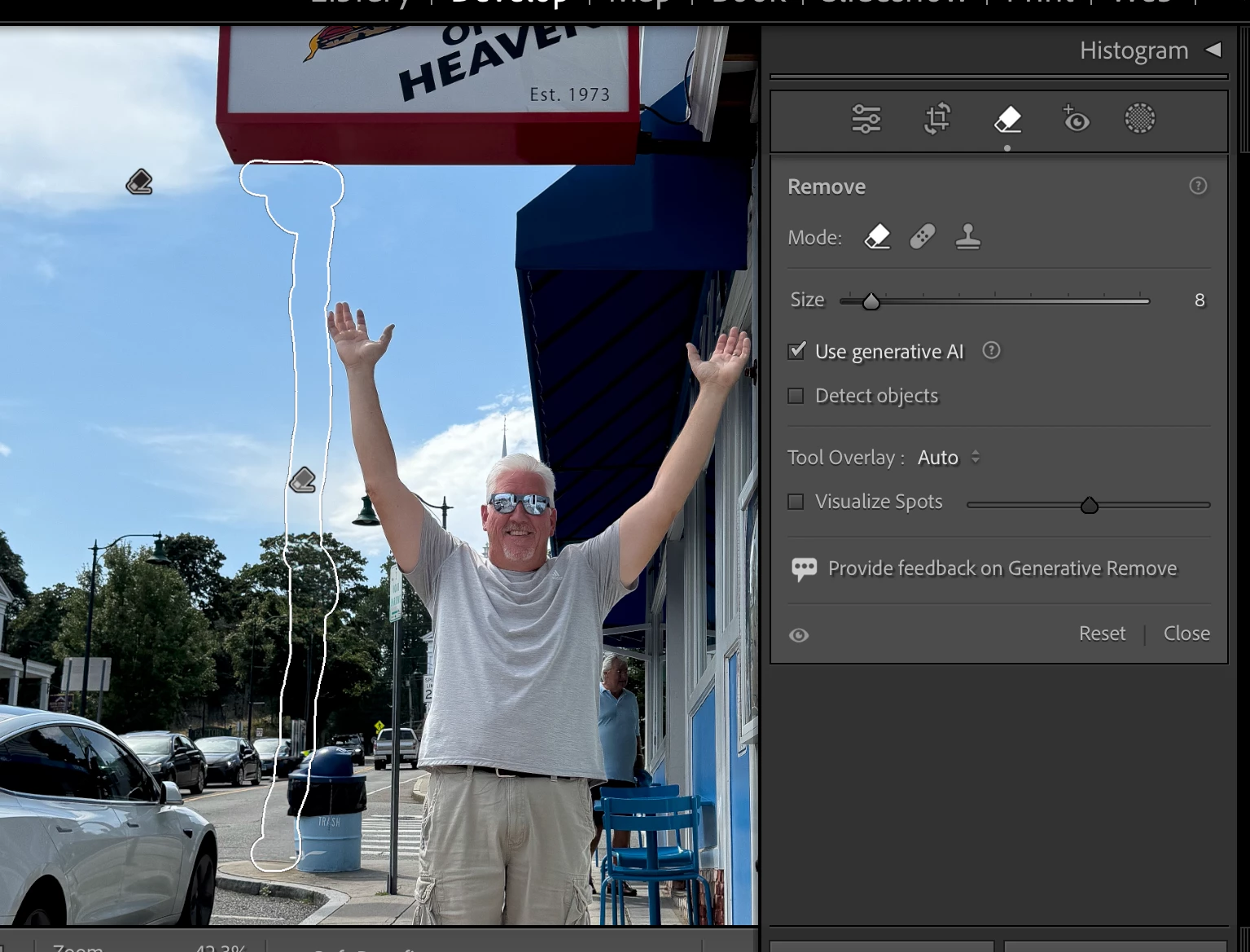 Generative Remove makes it easier to remove unwanted objects and distractions with a simple gesture, even on complex backgrounds. For more accurate results, be sure to include the object's shadow in your selection and/or expand its size.