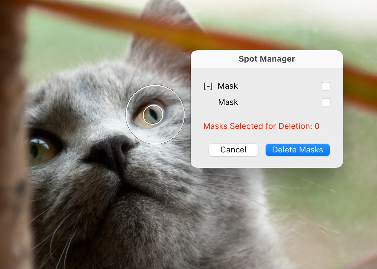 "Manage Spots" allows to delete specific spots within a "Spots Mask"