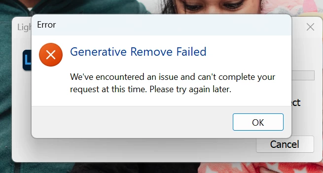 In my LR generative remove is not working at all. is this server issue? or experienced by anyone else too?