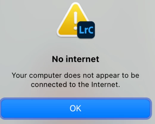Why is Lightroom telling me that I'm not conected to the internet when I definately am conected?