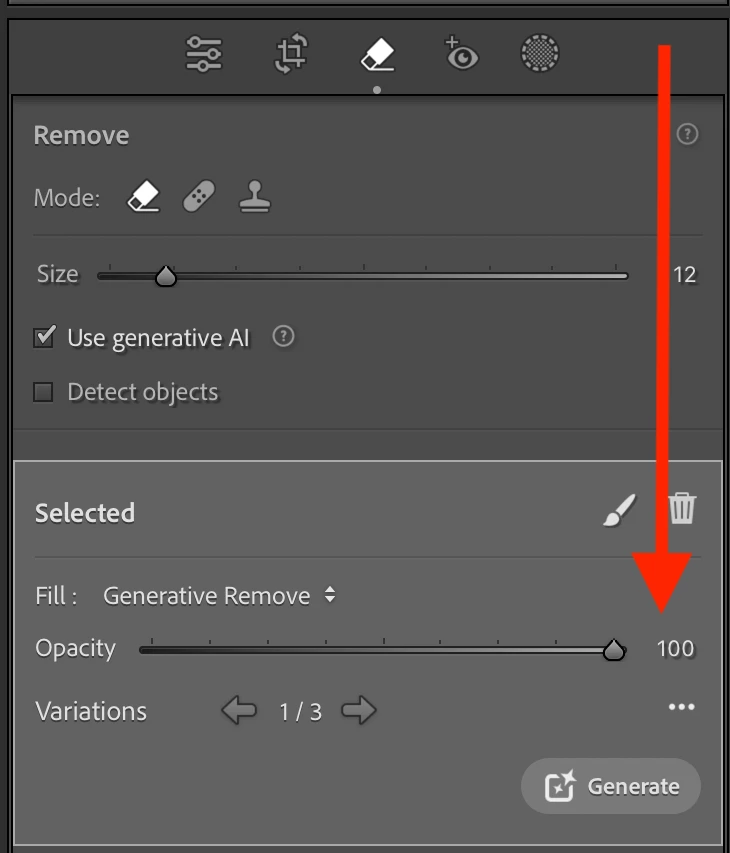 We have also updated the spot selection experience to make it easier to manage variations, switch the fill type, refine the selection area, or re-generate as needed.