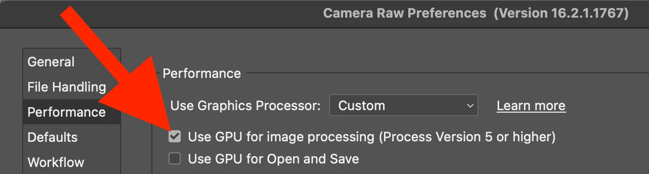 • Switching the GPU accelrator setting in Lightroom on/off