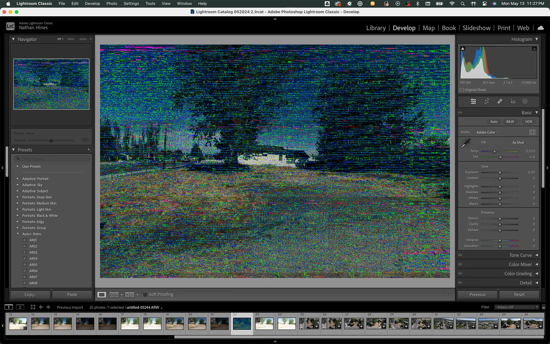 Since just now, I've been experiencing a weird bug / crash in Lightroom Classic (on a Mac), where ALL my photos suddenly are fully covered in artefacts in the Develop module.