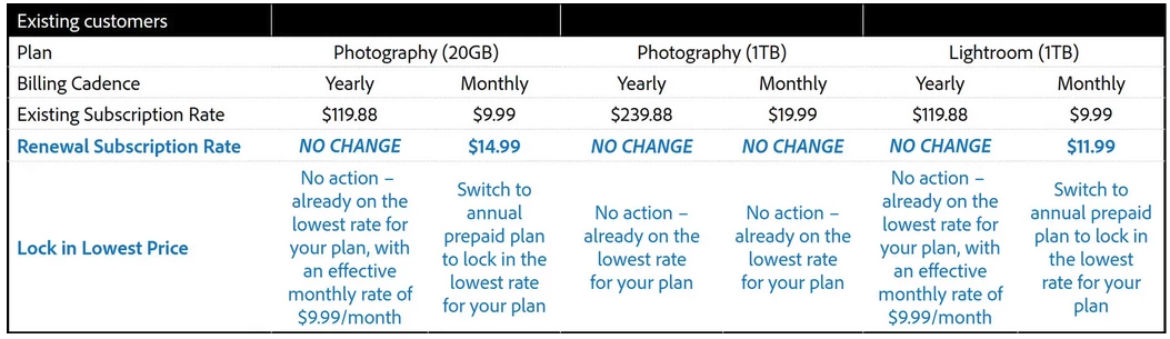 By switching from my previous Photography 20GB plan from monthly payment to annual payment, there was no increase in cost. So no reason for me to cancel.