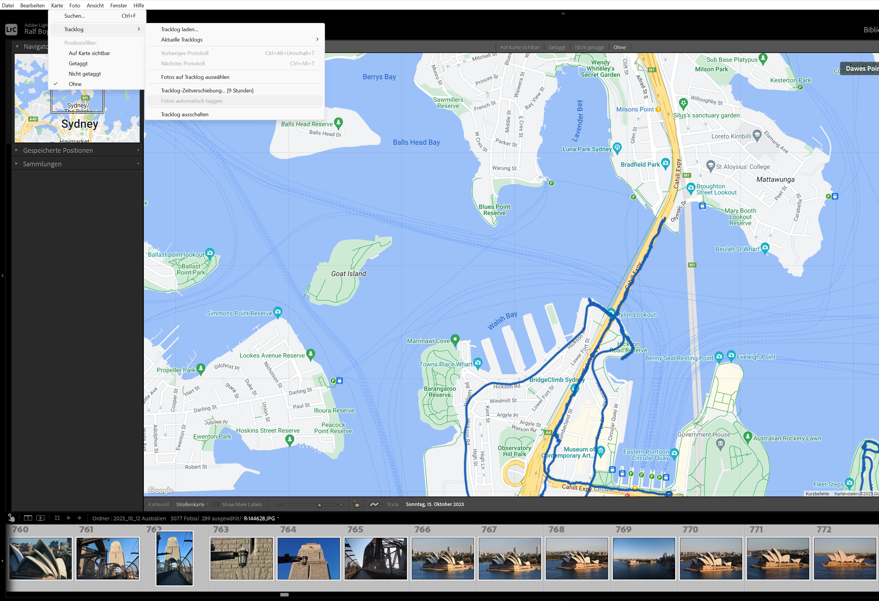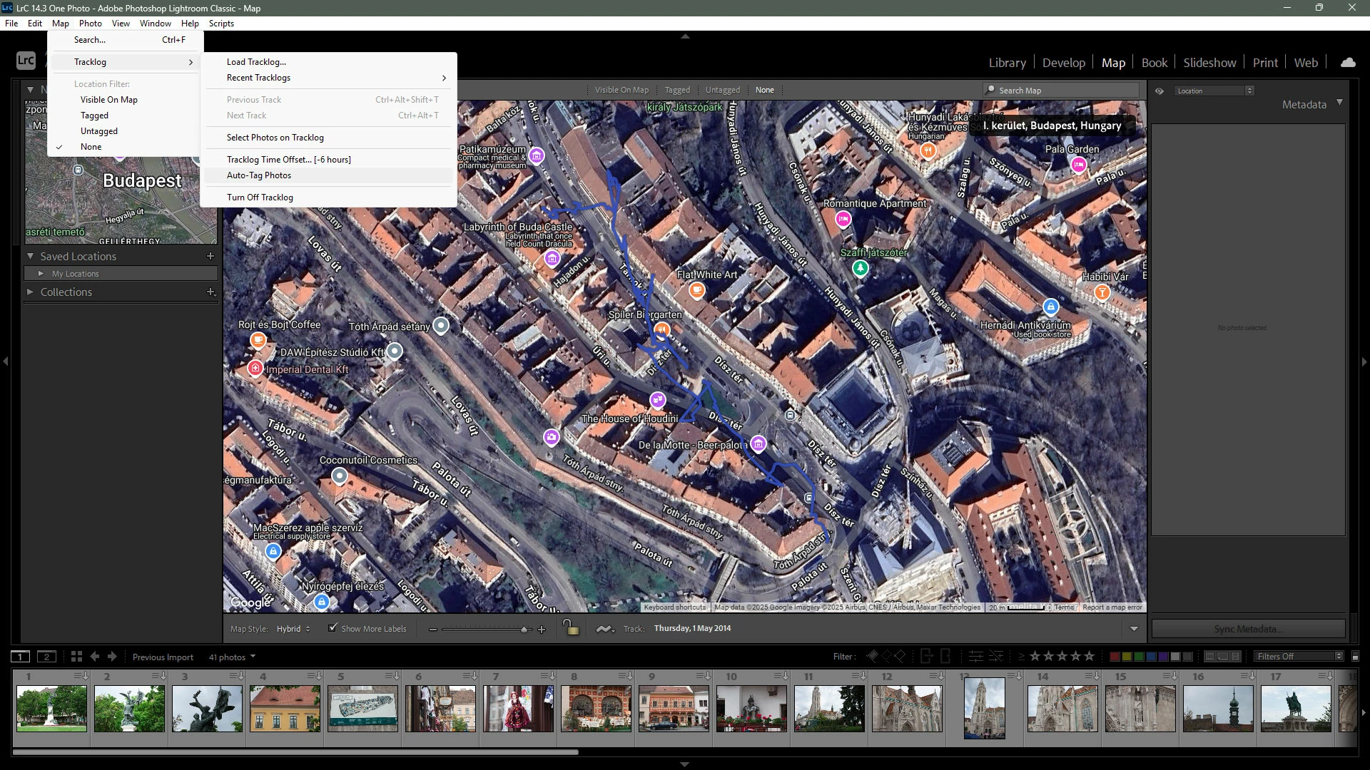 I created a new catalog and imported some photos for which I have a have a tracklog file.