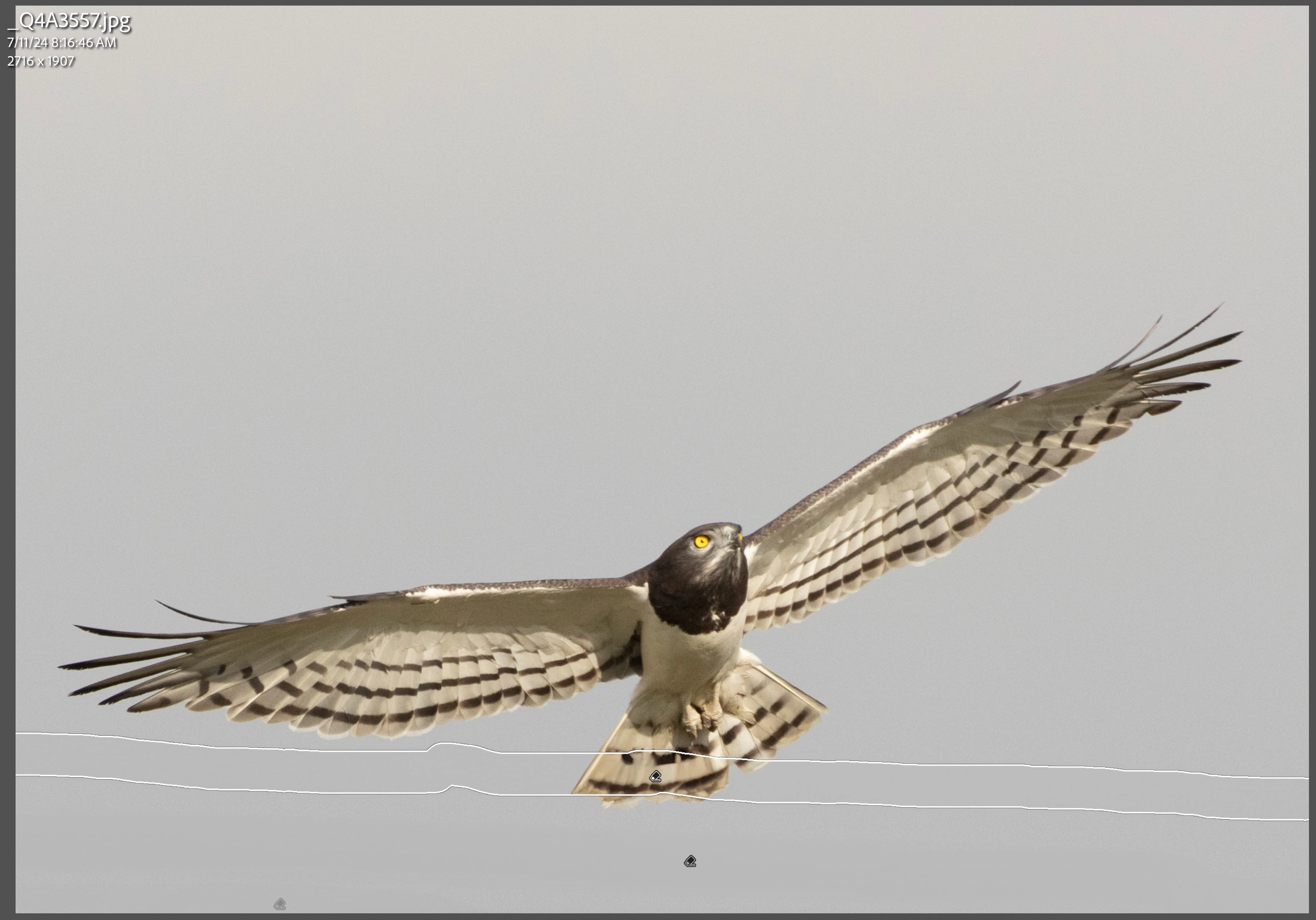 I just perfectly removed the wire from the tail of the bird, now it looks like the wire is behind the bird! I guess I will use photoshop to remove the rest of the wire.