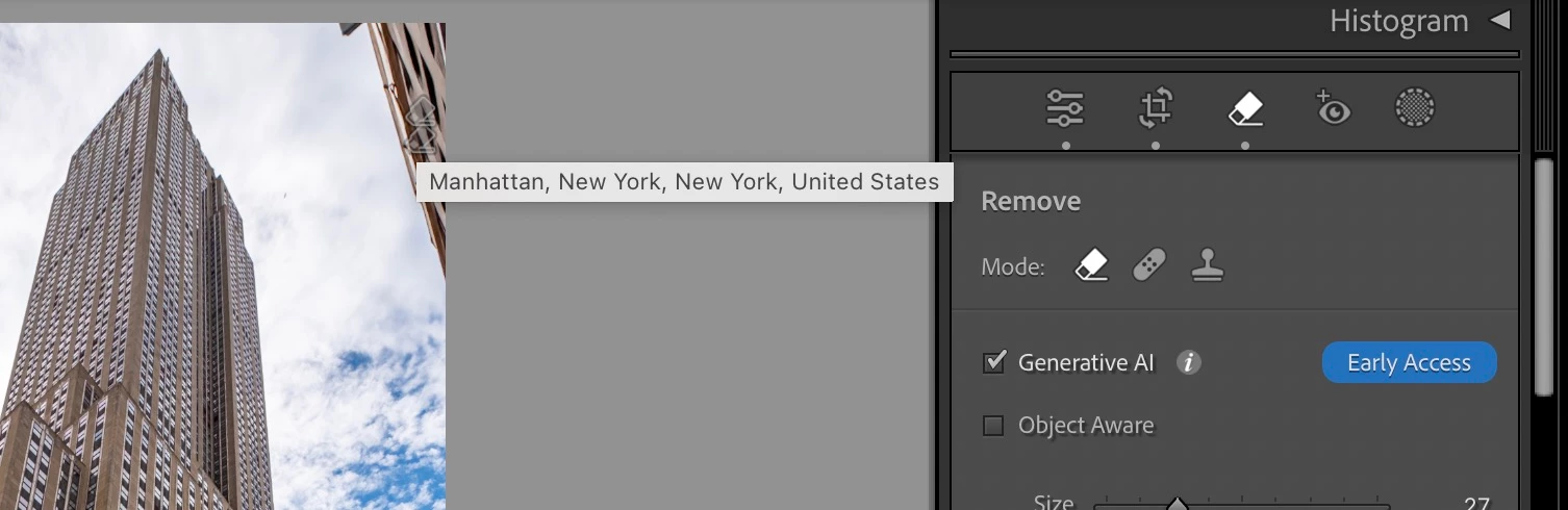 • You can find Generative Remove under the newly renamed Remove panel (aka “Heal”).