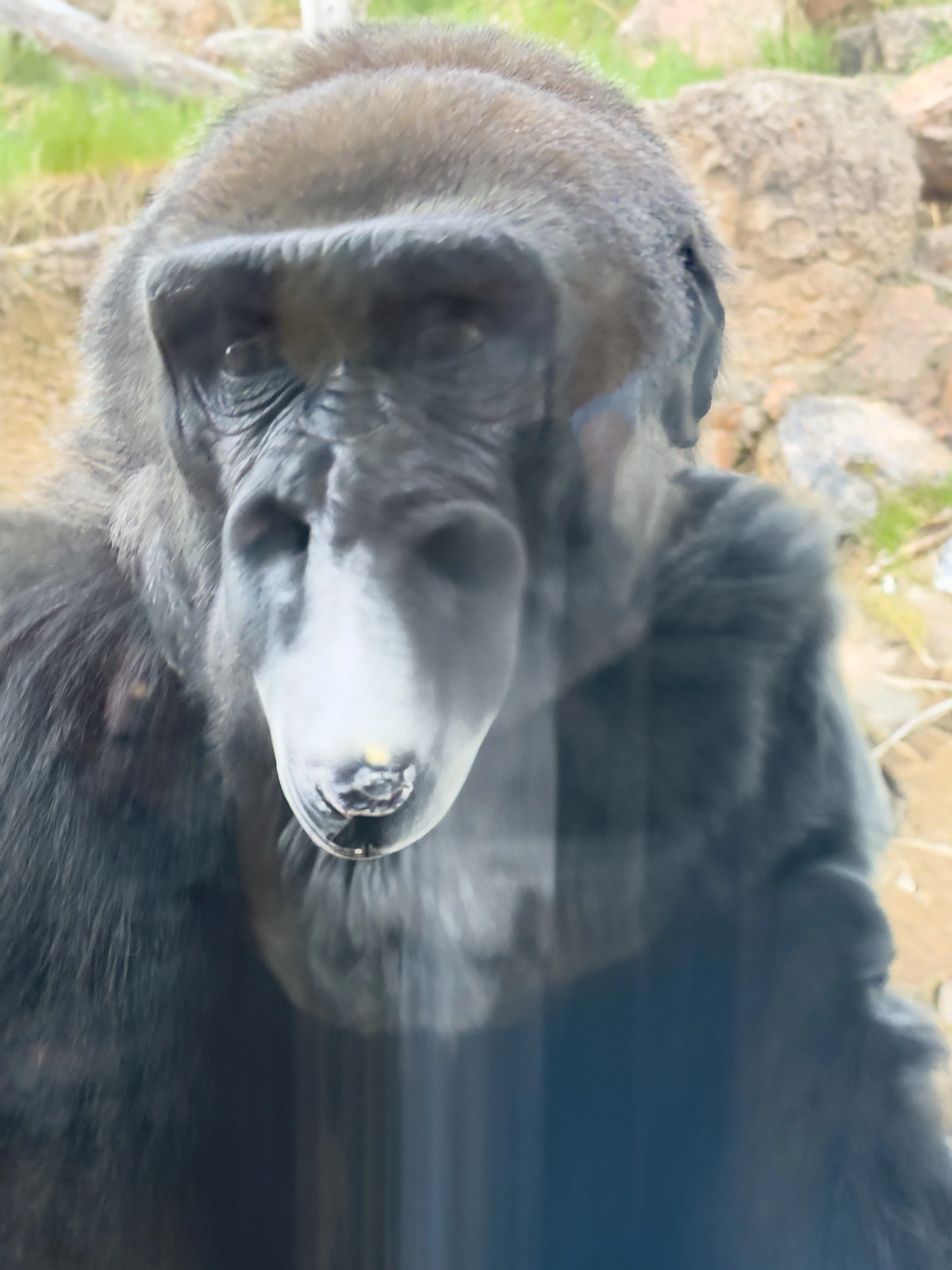 I tried to eliminate the reflection of me in the window between me and the gorilla in the zoo. It did not accurately recreate the gorilla body that I was trying to get.  It did get rid of my reflection and tried to replace it with gorilla, but failed.