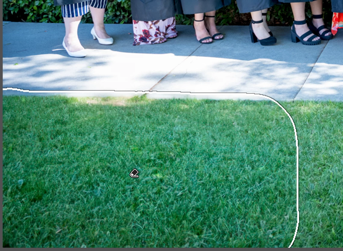 - Make sure you've got a generous boundary selected around what you want to remove/replace. In this example, including more of the in-focus grass tends to make the replacement more in focus, matching the rest of the grass.