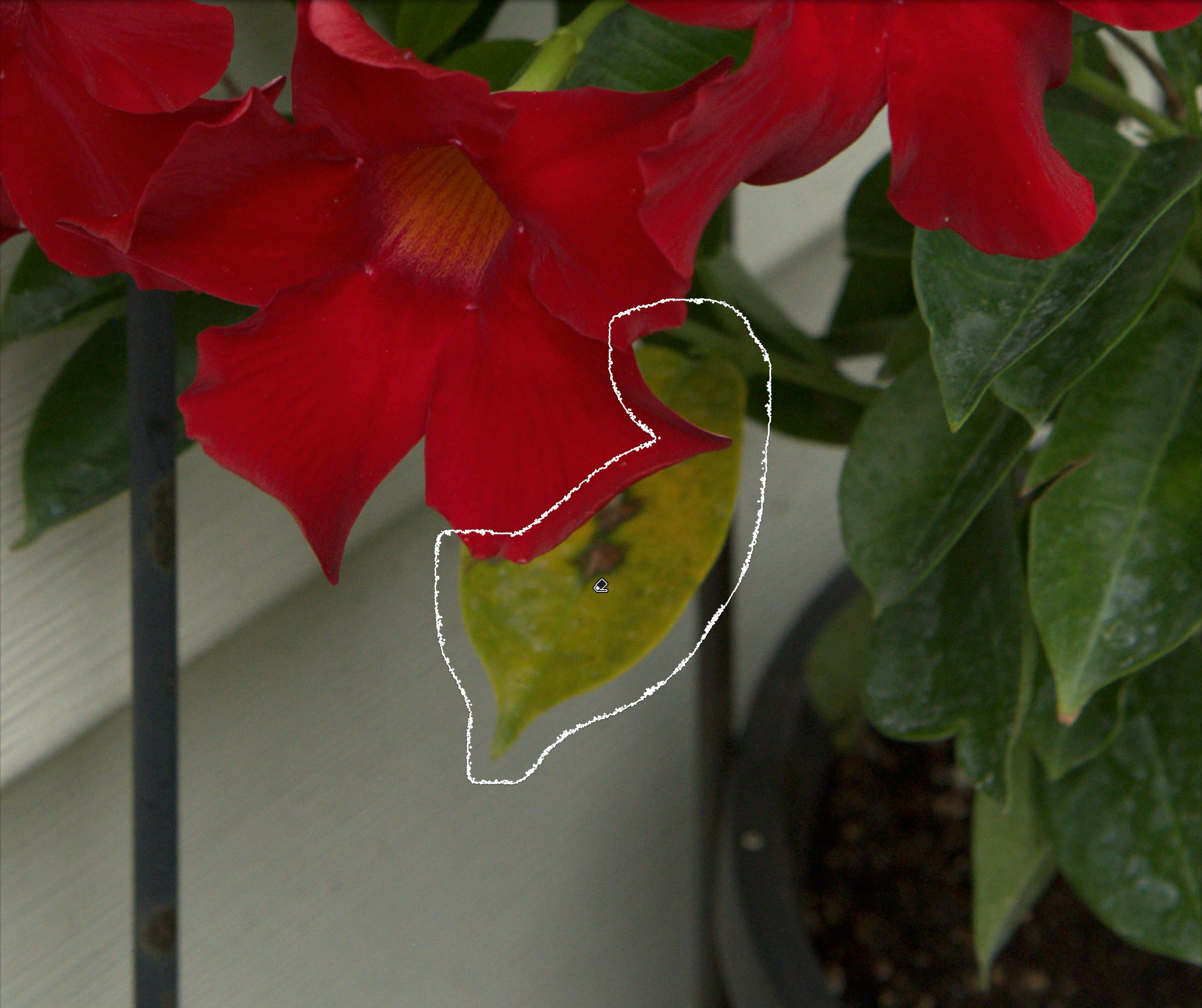 With Object Aware checked, I selected the entire yellow leaf, and Remove added a boundary around it to the selection, resulting it in it being replaced by the white siding: