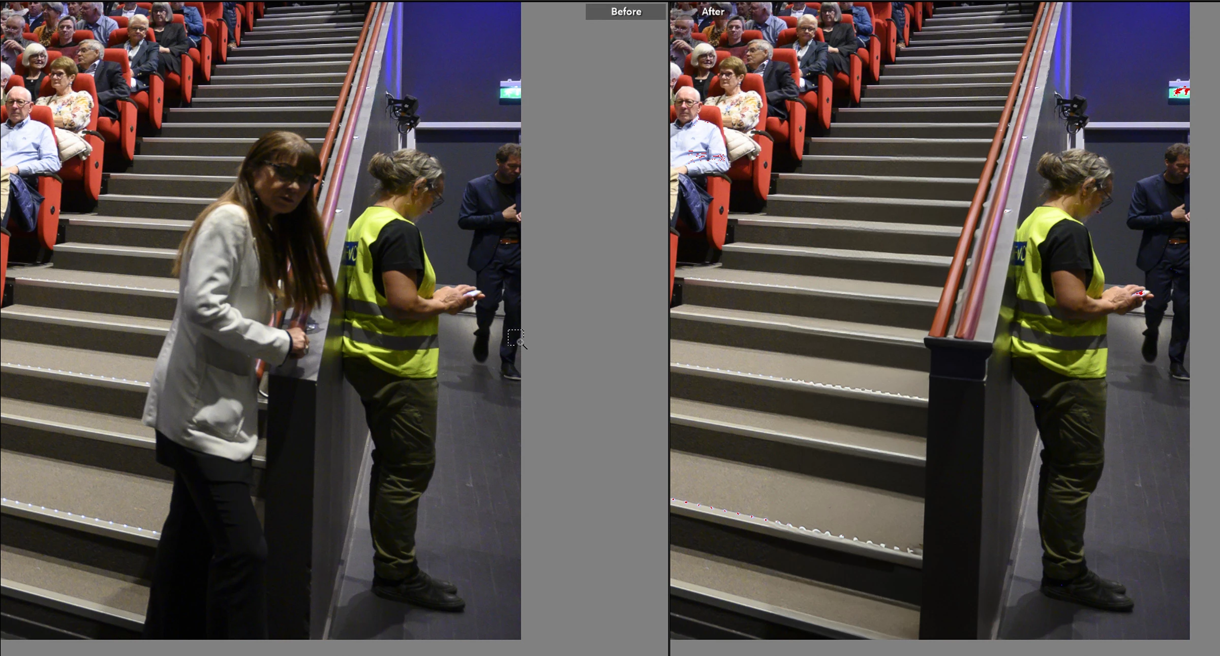 @ejsg: "after erasing a person from a picture ( a man ), suddenly a woman appeard in the picture sitting in the same chair as the man. "