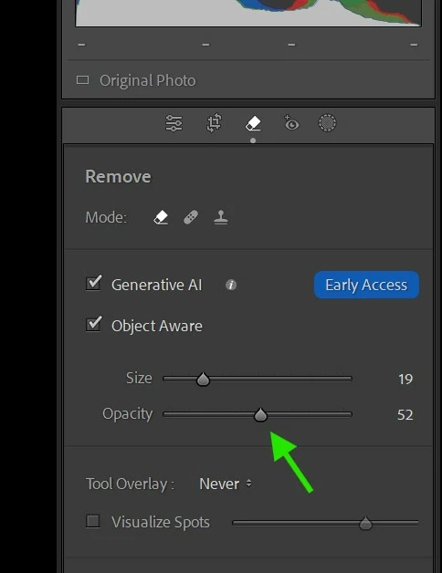 • Make sure the “generative AI” checkbox is enabled before you start brushing (note: when unchecked, Lightroom will use Content-Aware Remove to fill your brushed spots).