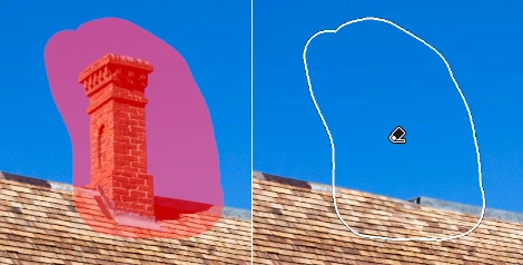 Impossible to suppress a simple chimney emerging from a roof on the sky... It fills the selection with another chimney or artefacts.  When returning to heal or stamp impossible to move the replacement selection 😞