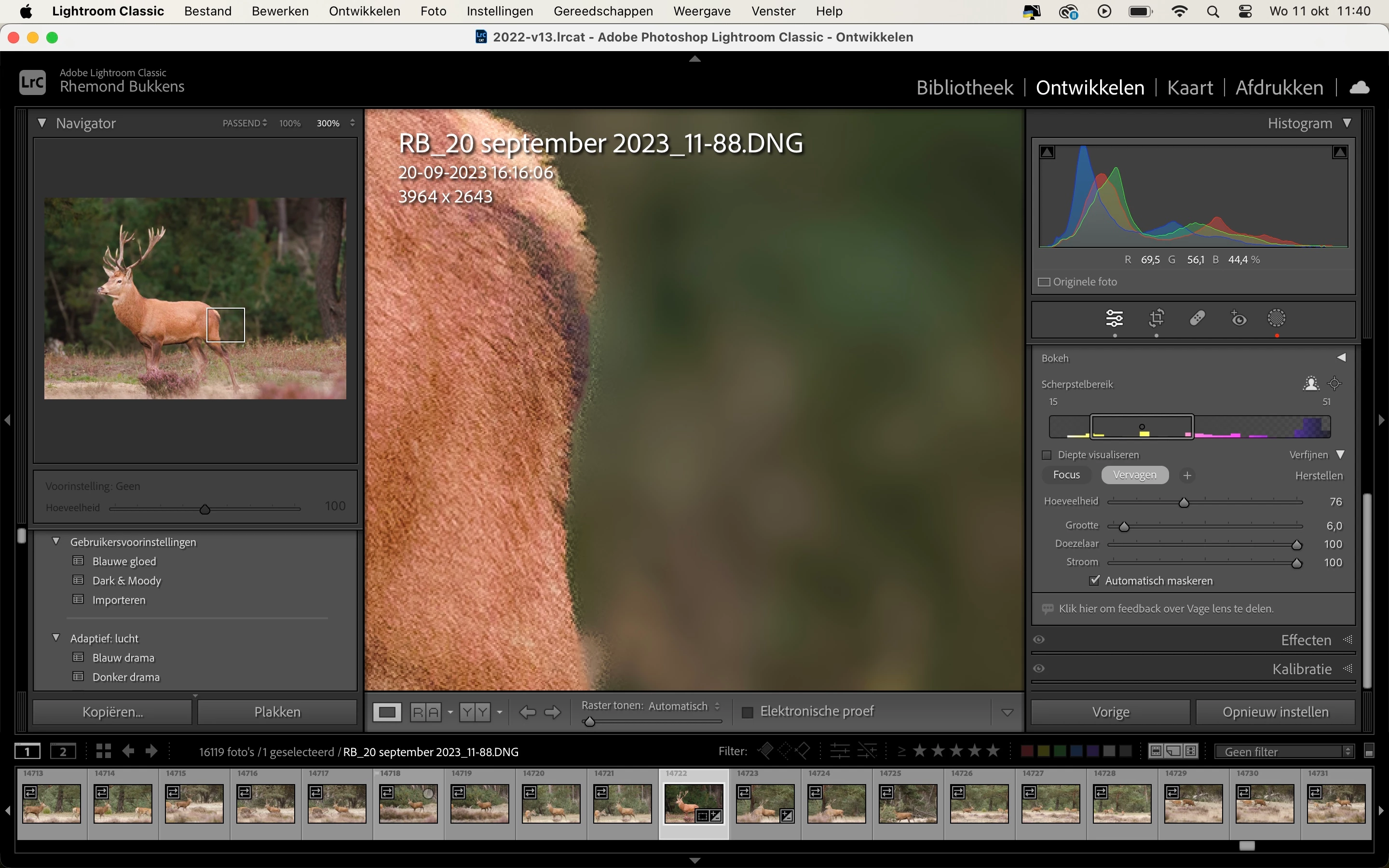 • Lens blur will automatically prioritize focus for the detected subject, but you can also interactively adjust the focus distance. Precise focus range tuning is also available (currently desktop only: Lightroom Desktop, Lightroom Classic, and Camera Raw).