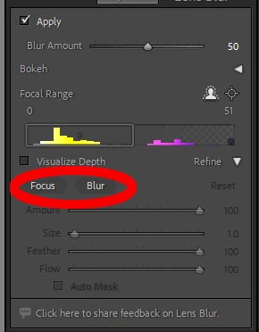 Please give me a way to add or subtract from the mask in the lens blur module.