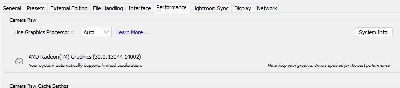 If the OS or the driver is not available or possible and the problem persists, then try the following workaround method as a last resort. The method provides a mechanism to allow LrDesktop/LrClassic/ACR customers to force the ML inference to always run on CPU instead of default. See details here https://helpx.adobe.com/camera-raw/kb/acr-gpu-faq.html#lens-blur
