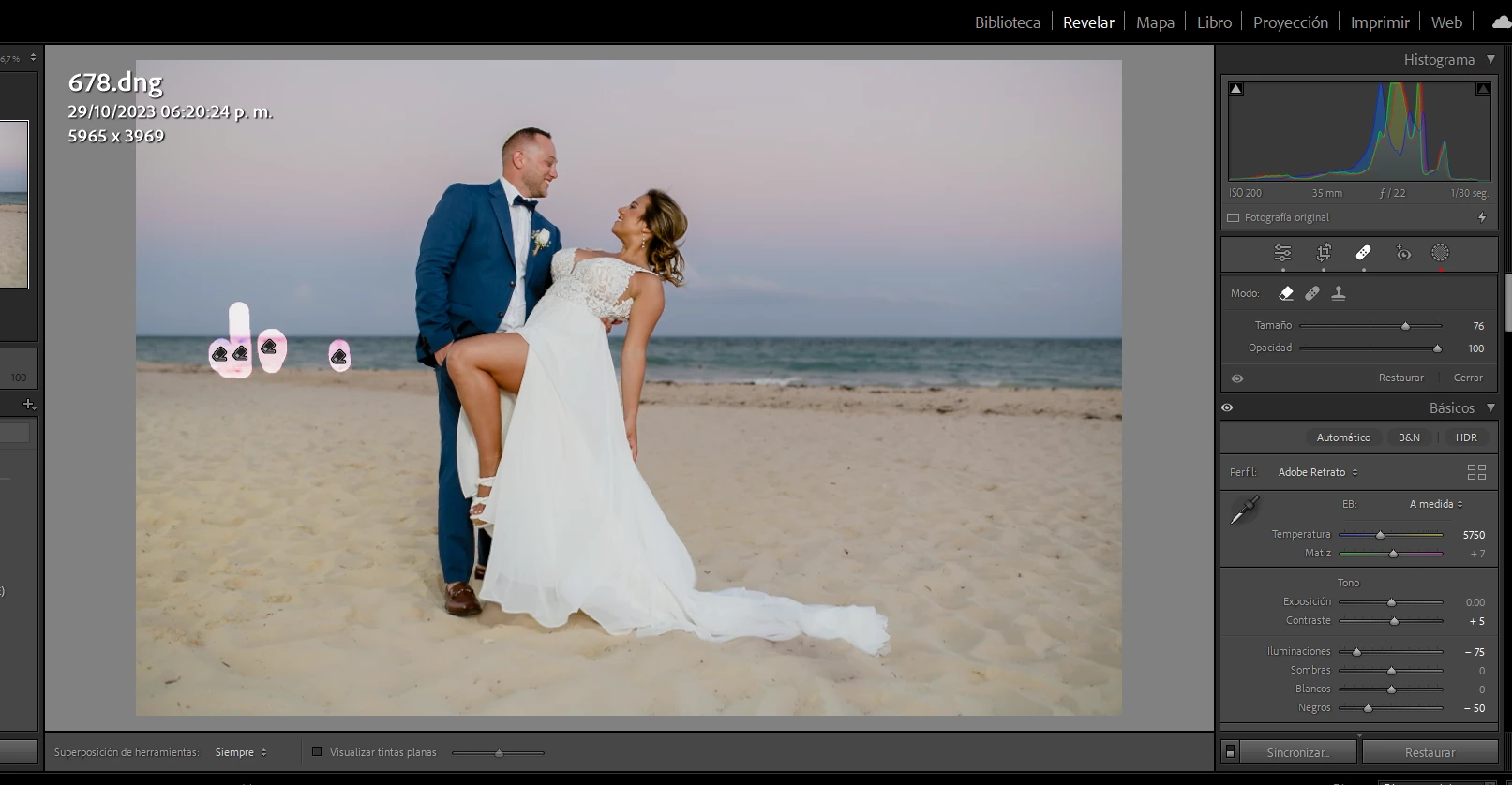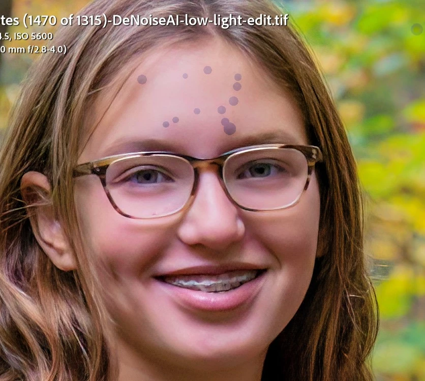 5. (all is good so far), then found some more spots to remove.  After using the spot healing tool, all areas that were removed (even ones that were done in Step 1) remain highlighted with bright purple circles.  They will not go away, even after reboots and a RTX 3060 driver update.  They are permanently on the photo.  Some remnant of the code to show the circles remains active and does not refresh the area.