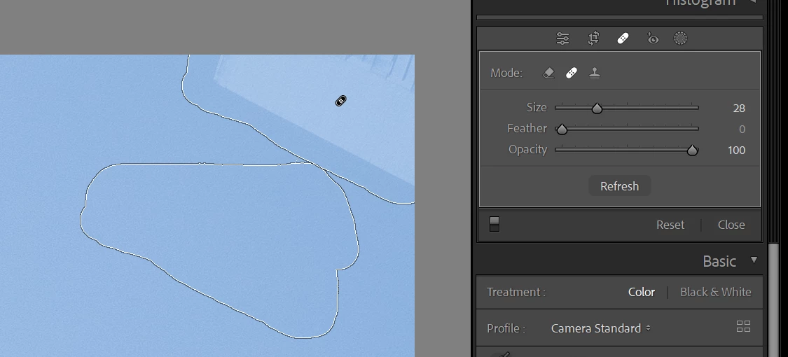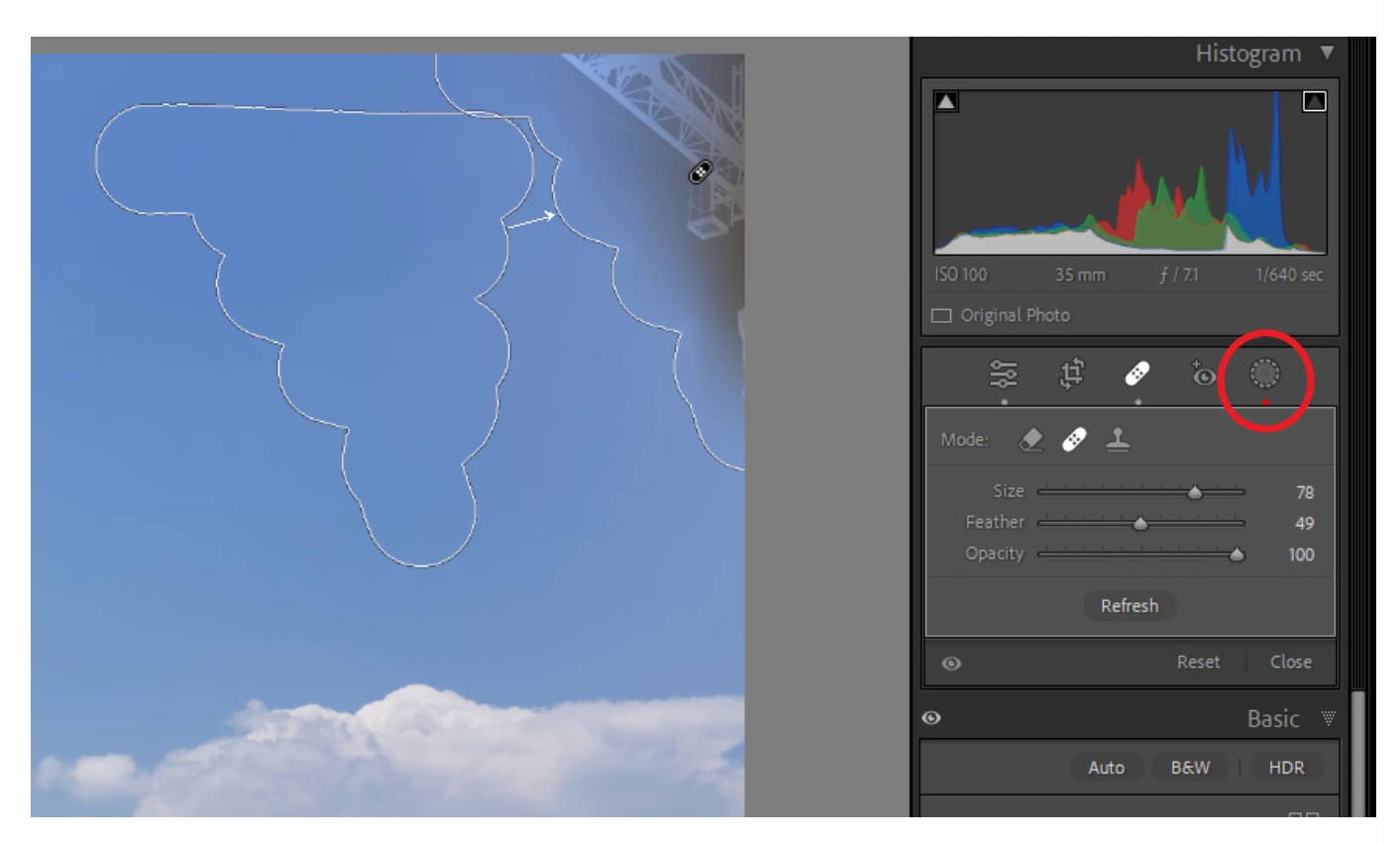 4. Notice that you can still see some of the object through the blue sky that was added. This was never seen in previous versions of Lightroom