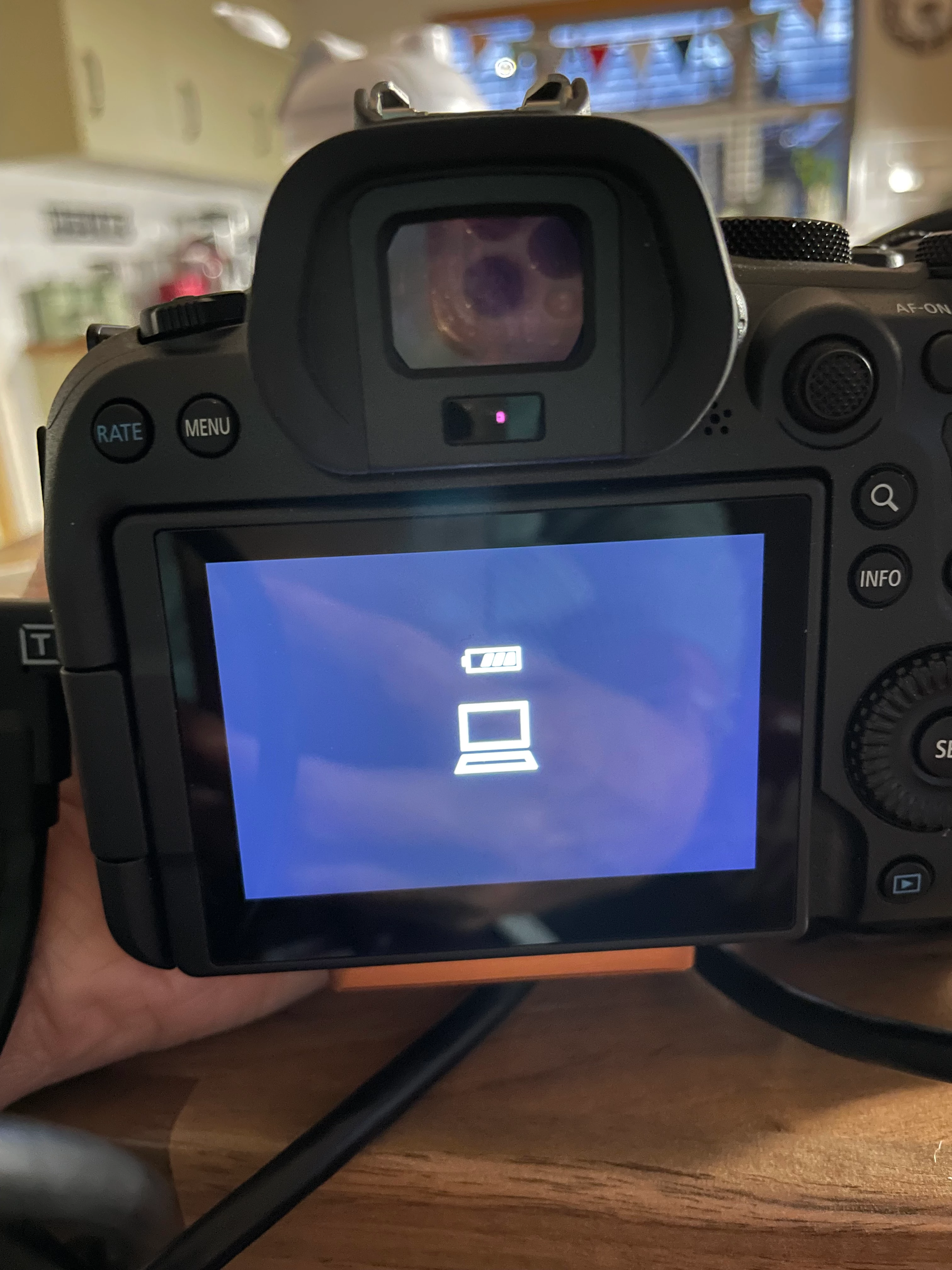 My camera, lens and compute are all updated as of today but it still doesn't work. I have attached a photo of the back of the camera when it's in LRC. I have got it conected via EOS Utilities and that worked.