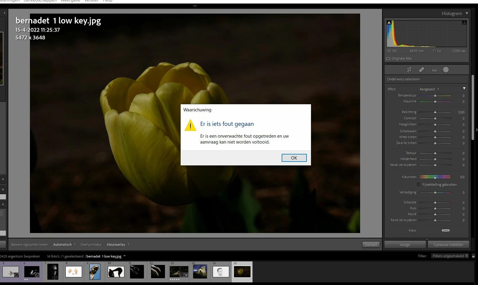 The image in the screenshot is JPEG. Does the error occur with RAW images too? Have you tried any troubleshooting steps?