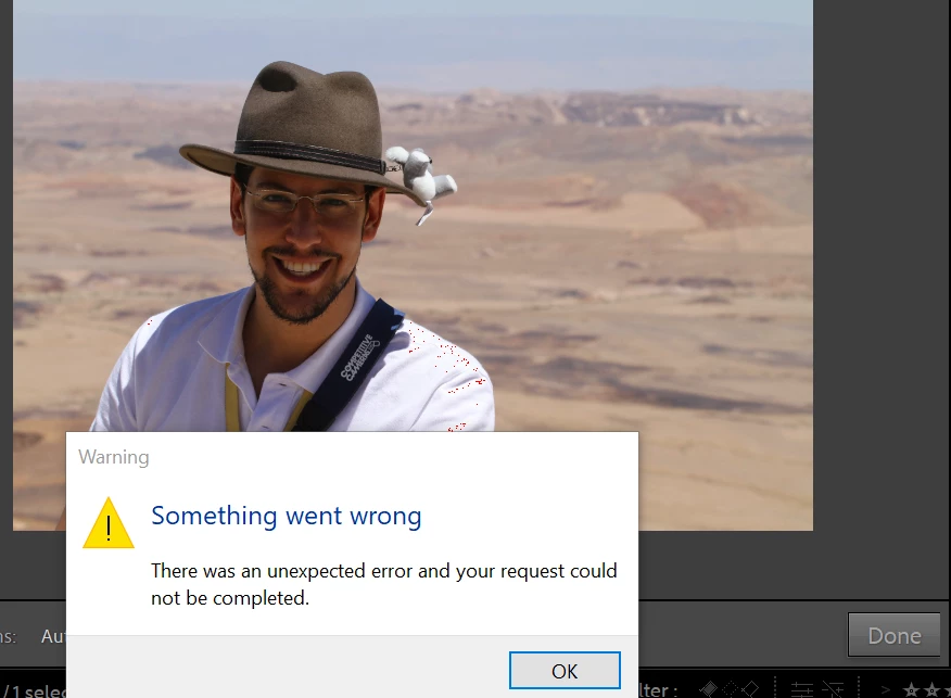 I keep getting an error message when I attempt to select sky/subject with the new masking tools, does anyone know how I can fix this   The message says "  there has been an unexpected error and your request could not be completed"