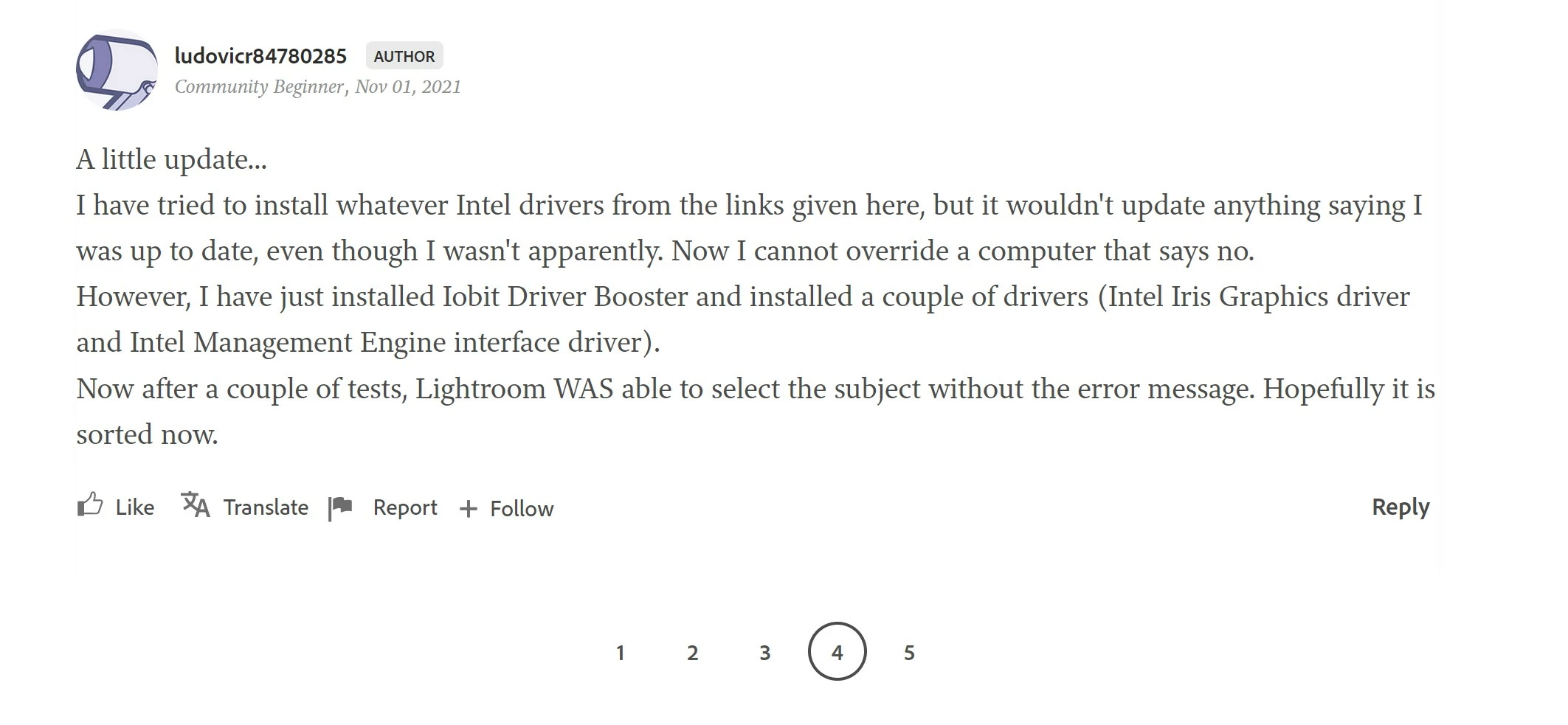 With the new update, when using  Select Sky or Select Subject, i get an unexpected error message saying something went wrong and the request could not be completed.