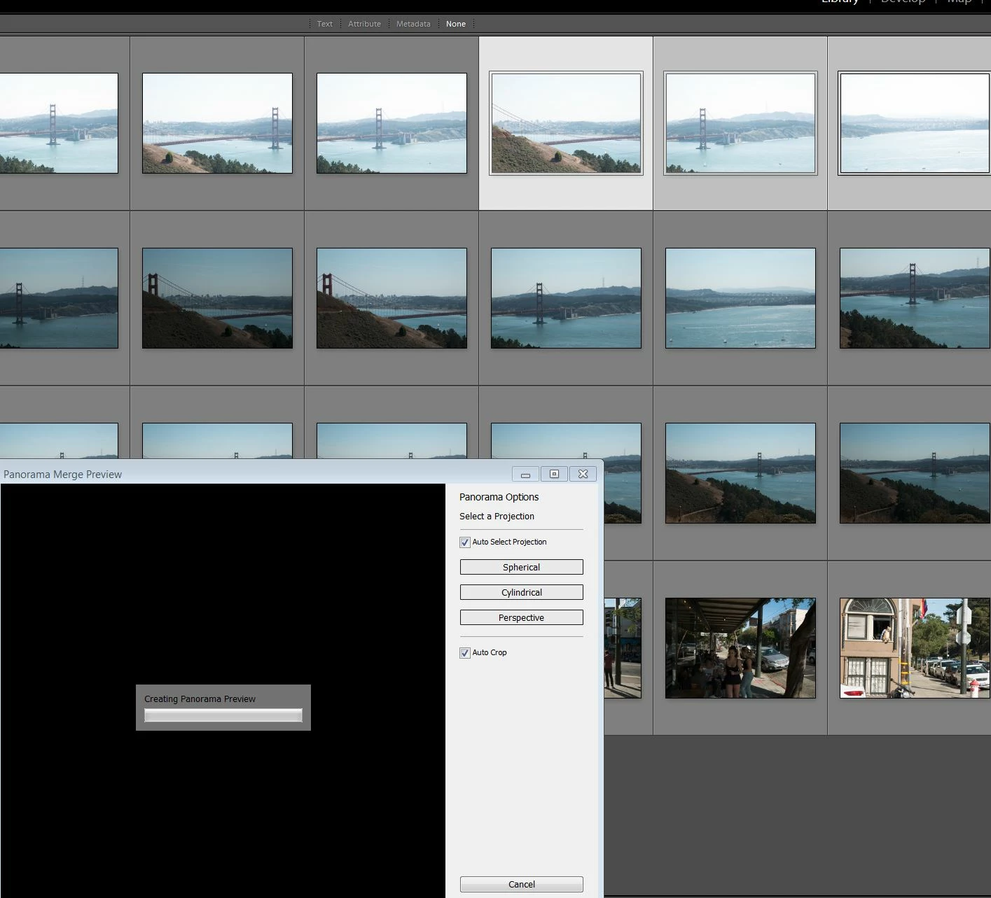 I'm trying to create a pano for the first time in Lightroom CC and it just freezes on "creating preview" Doesn't even start on the status bar.