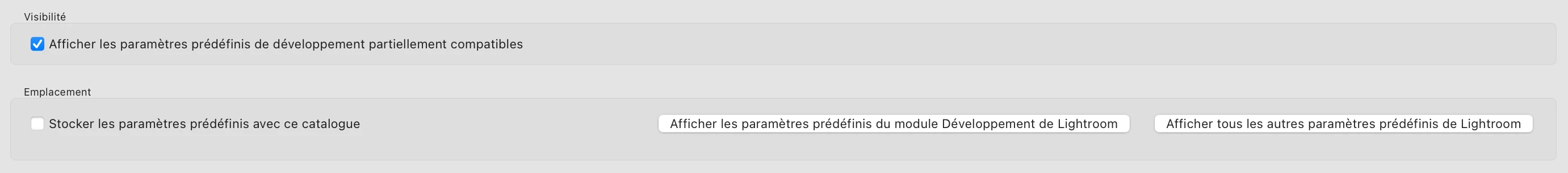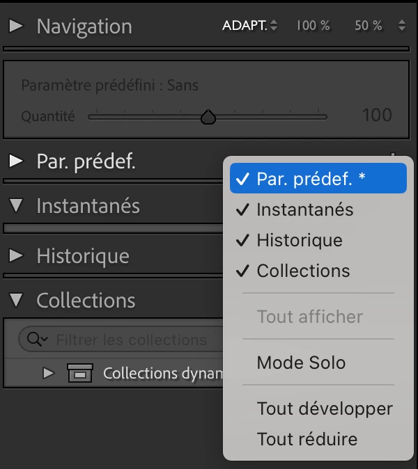 Paramètres prédéfinis disparus - Dernière mise à jour Lightroom Classic