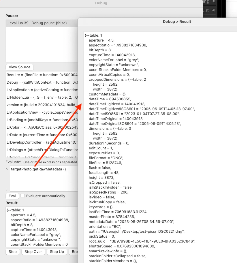I'm looking for a list of keys for photo:getRawMetadata for a LrC-Plugin.