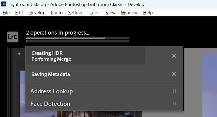 I have now tried to create another HDR but as expected having explained the above the result is the same as in the old catalog. The save metadata process gets stuck and nothing happens anymore.
