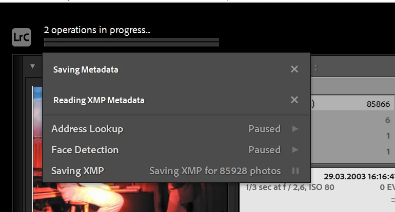 Seelecting i.e. "Has been changed" and trying to save metadata for one image as a test results in process being stuck - so the same state as with the original catalog.
