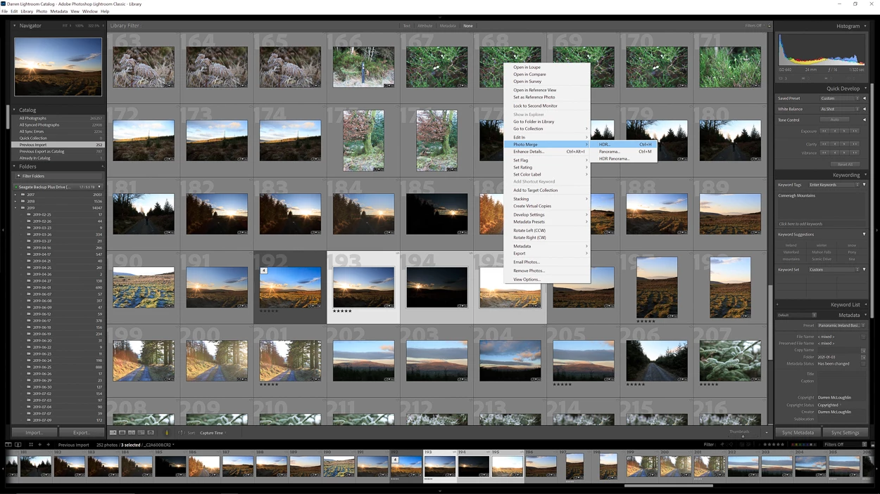 - Right click and choose Photo Merge > HDR...