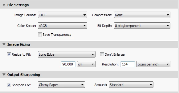 When making prints this size, only use images that are sharp (unless they are intentionally unsharp of course), and have generally good quality. If you use an underexposed image that needs brightening, there will probably be some visible noise, that might be very noticeable in the print. Proper sharpening is very important, do not oversharpen, and use the Masking slider to prevent sharpening of noise in flat areas. (press the Option key while dragging the slider to see the effect).